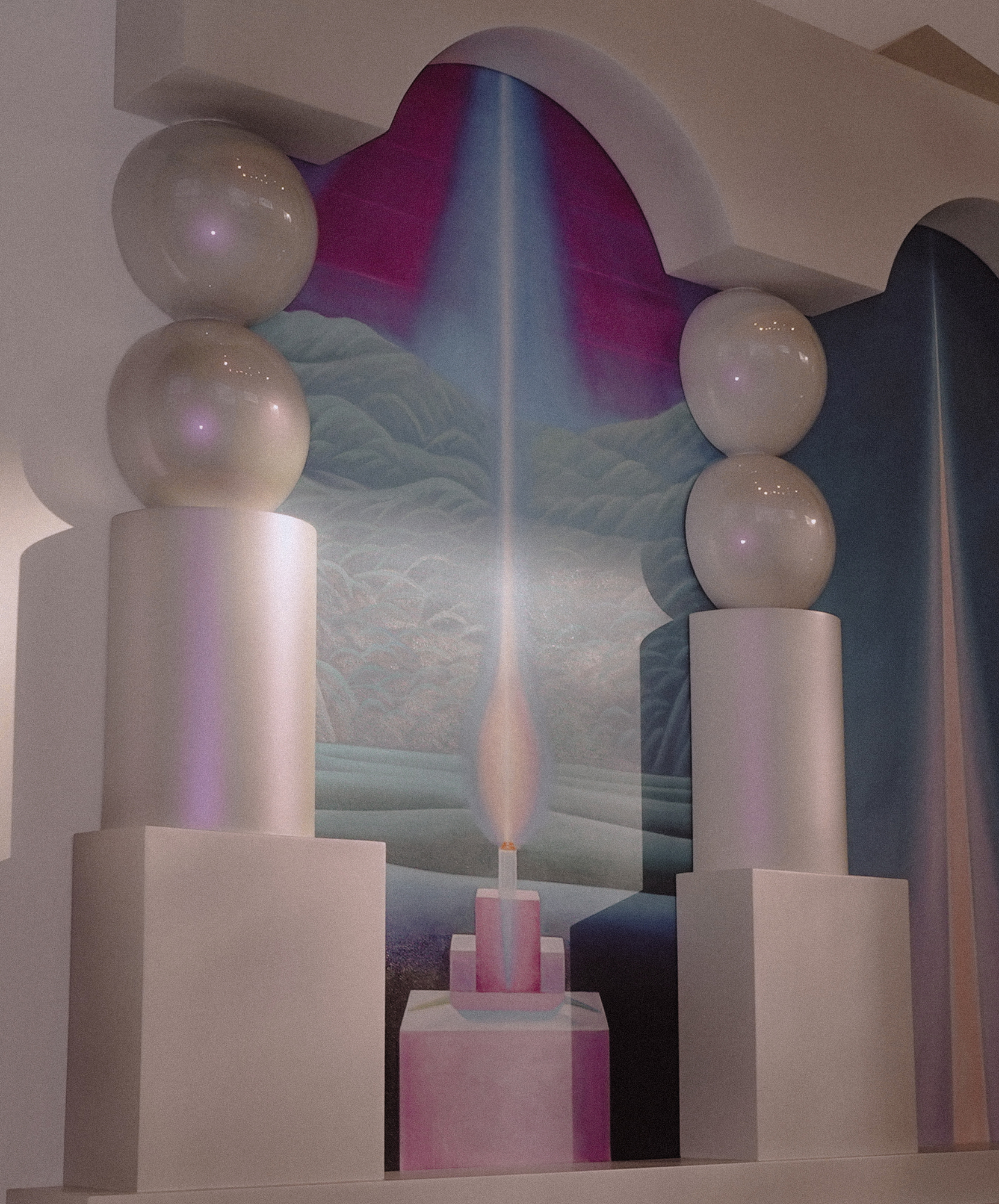 Three Cosmic Rays is a portal where three beams of light connect the seen and unseen. Inspired